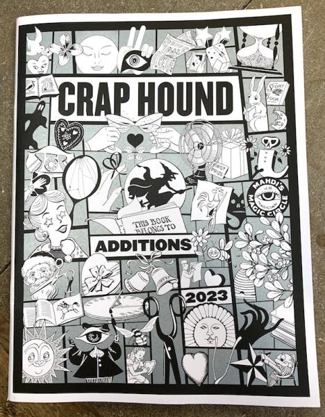 Each page of Crap Hound is a treat to the eyes. Design-types will appreciate the incredible attention to detail of tessellation, and how each page tells a story all its own. Crafty-types and Xerox-jockeys will enjoy taking scissors to its pages and refashioning their own works. Tattoo artists will revel in the iconography on each page.