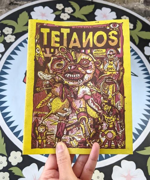 From Neoglyphic Media comes issue #5 of this excellent bilingual (Spanish and English) comic collection, which is edited by Mexico City’s Abraham Diaz. The burgundy and yellow ink tones throughout are perfect for the raw content which is, in turn, violent, raunchy, poignant, philosophical, and hilarious.